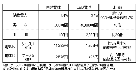 激励に感謝するとともに、前回例にあげた「白熱電球をLED電球に交換する」ケースについて、もう少しデータを補足させていただくことにした。
